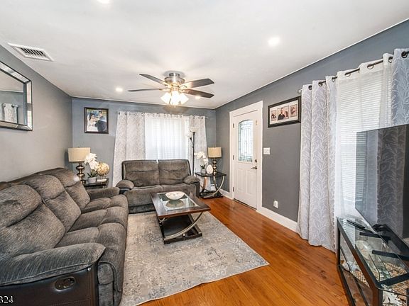 Single Family ranch style home is meticulous! Home is larger than it appears. You will be pleasantly surprised. Large Primary BR w/ walk in closet, 2 additional BRs, gleaming hardwood floors, DR & LR 1st fl laundry/mud room, updated bath, New Kitchen, central air & Insulated basement with plenty of storage, oversized driveway w/ 2 car detached garage & covered patio area in yard. Great neighborhood. Walk to NJ Transit Bus.No pets. No smoking/vaping. Tenant must carry renter's insurance and is responsible for snow removal. Landlord will care for lawn.
