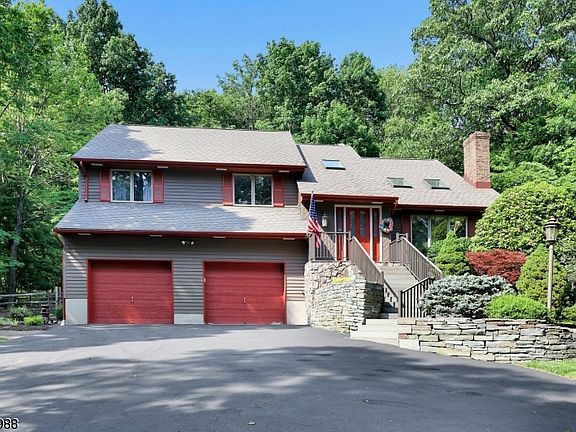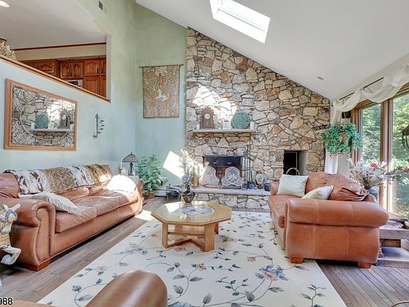 Your special OASIS is nestled at the end of a private drive on 2.3 acres of gorgeous property! Custom built 4 BR/3 BA home w backyard Shangri-la! Stunning floor to ceiling stone fireplace in LR with vaulted ceiling and skylights. Well-appointed kitchen has SS appliances, dbl wall ovens, quartz counters, and adjacent dining area with sliding doors to multi-level Trex deck. This floor has two other BRs plus MBR with add'l deck access and backyard view. Lower level has large family rm with wet bar, sliders to backyard, 4th BR, full BA, laundry, pantry, and walk-in closet. Backyard Paradise: Saltwater in-ground pool, hot tub, prof landscaped garden, meandering walking paths, paver patios, and shed. 2.78-acre lot assures privacy whether alone or entertaining a crowd! You will not find a more beautiful property!