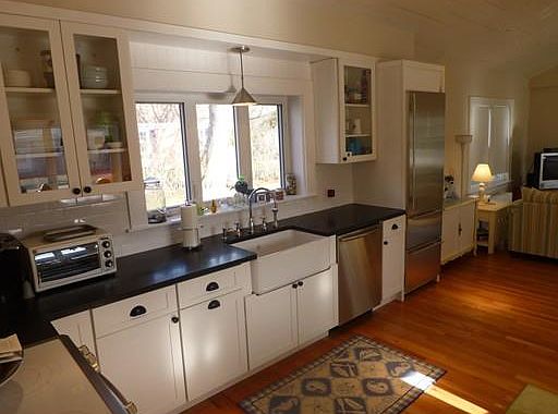 Significant Price Break! Close your eyes and dream it. You're wishing for a Village setting, a perfect in-town location, just steps to the harbor or Main Street. Set on a quiet dead end lane, so peaceful...you're here! Great renovation on a charming side street just steps to everything, but tucked away. Cathedral ceilings, quality renovation with upscale kitchen and appliances. Thoughtful updates bring style and a wide open enjoyment of the sunny living space. Kitchen pampers you with soft damped drawers along with Sub Zero and Bosch appliances. Honed granite and farmers sink, what a delight! Expansive dry lower level offers countless opportunities. Hardwoods throughout. Private back yard offers blue stone slate terrace and outdoor shower. Spacious 1 car garage.