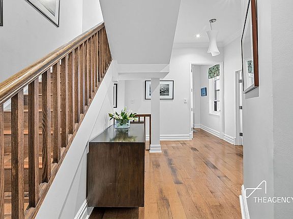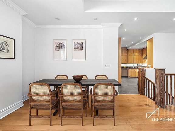 On the top floor, soaring ceilings and hardwood floors set the stage for a dramatic living and dining area with dual exposures. The chef’s kitchen is equally impressive, featuring premium appliances, abundant counter space, and ample storage—a perfect blend of style and functionality.