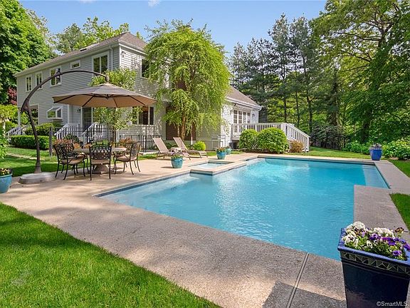 Amazing Westport location with a rare combination of walk-to-town convenience and sparkling bluewater views! Be a part of the downtown hustle-and-bustle and also relax at home in your saltwater pool with the tranquil sounds of nature, cool water breezes and breathtaking sunsets! Meticulously maintained this stunning 4 Bedroom, 4 Bath Contemporary home is a private oasis of perfection inside and out! I would literally buy this home if I could! Featuring a bright open floor plan with easy flow and healthy indoor/outdoor living from every room. Formal dining, family room adjoining gourmet kitchen with French doors leading to covered deck, terraces and romantic pergola for sophisticated dining and entertaining. The impressive sun-drenched living room features vaulted ceiling, fireplace, and French doors leading to open-air deck overlooking lush landscaping, private saltwater pool and spa, and Saugatuck waters views. Master Bedroom Suite with new spa bath, oversized walk-in closet and dressing area, loft home office, two additional bedrooms and full bath. Fully finished LL offers playroom, gym area, guest suite with kitchenette, full bath and separate entrance. Steps to the local Westport Farmers Market, Levitt Pavilion, Library, downtown restaurants and shopping and steps to train shuttle for easy NYC commuting! Location, Location, Location!