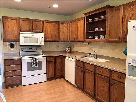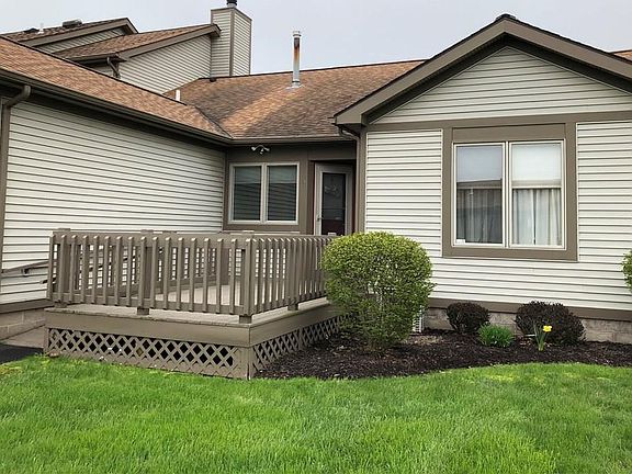 Looking for 1st floor living? This lovely ranch could be your next home! Open concept floor plan with hardwoods, vaulted ceiling, skylights, two spacious bedrooms with ample closet and storage space throughout. Cooks kitchen with updates; Granite counter tops and tile backsplash, Spring 2010, dishwasher '17, HWH 11/18, Dryer 4/18, Hardwood floors 8/14, laundry hookups in basement and 1st floor, roof is only a few years old, in addition to new garage door with opener in 2017. This unit offers privacy with covered front porch and deck with ramp. Guest parking is only a few steps away in addition to garage and space for 2 cars in driveway. Sliding doors to shower with 2 seats. Conveniently located near shopping, restaurants, recreation, medical facilities and universities. HURRY!!!