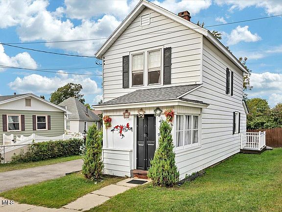 Charming, move-in ready home! The owner spared no expense bringing this property back to life, including a brand-new roof. The first floor features a welcoming living room, a kitchen with stainless steel appliances and a built-in coffee bar, a newly added half bath, and an enclosed back porch with a sliding glass door that opens to a brand-new deck. Upstairs, you'll find two bedrooms and a beautifully remodeled full bath with a spa shower. Additional highlights include replacement windows, hardwood floors, wood moldings, and original pocket doors—all freshly painted and stained throughout. The home also offers a 1-car attached garage. All appliances, 3 TV mounts, and 3 TVs are included. A must-see property!