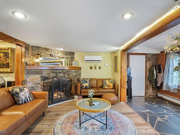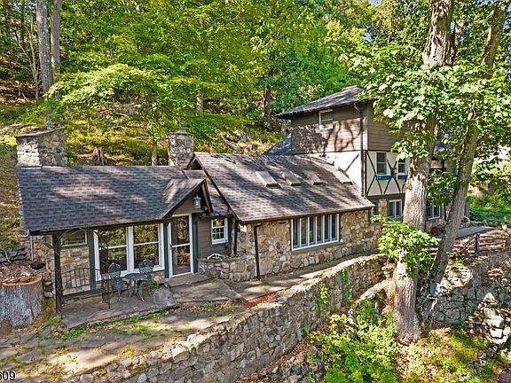Welcome to the Hayes House, a fanciful Lake Mohawk original with curiosities & imaginative details sure to win you over! Featuring seasonal views of Lake Mohawk from atop Bacon Hill, this incredible property provides privacy and serenity year-round. Thoughtfully designed with three distinct levels of living space, two living areas, 3-4 bedrooms, a one of a kind primary suite and two full bathrooms, provides ample space to entertain as well as relax and enjoy the peaceful surroundings. The home itself is filled with distinctive elements, such as a natural rock atrium, a round stone stairwell, and three unique fireplaces. The first level features a living room with an original stone fireplace, dining room, kitchen, family room, full bathroom, patio room, laundry room, and utility room. The second level features the primary bedroom with dressing room, full bathroom, and second bedroom with sitting room/office or use as a spare bedroom. The third floor is highlighted by two unique rooms, each with its own access stairwell, one is a bedroom w/ a hidden room, and the other is a whimsical crow's nest accessible through a hidden stairwell with original built-ins! Exterior features include terraced gardens, a patio for captivating views, and a detached 2-car garage with loft (approved for residential use). Incredible care has been poured into restoring this special property over recent years, including: roofing, siding, HVAC, nat gas, a fully renovated kitchen and bathroom!