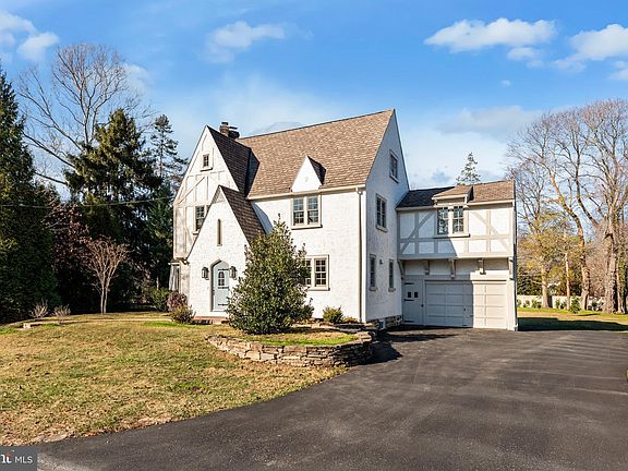 This impeccably renovated 5-bedroom, 4 1/2 -bath Tudor home masterfully preserves its old-world charm while offering a modern floor plan and amenities that cater to today’s discerning buyers. Situated on a rare, expansive .55-acre flat lot in Wayne—a notable rarity in this area—the property boasts a spacious backyard ideal for various outdoor activities. The first floor features a custom-designed kitchen with inset cabinetry by Omega, Carrara marble countertops and slab backsplash, and a custom-built range hood. The kitchen is equipped with a La Cornue CornuFé 110 range, Shaws farmhouse sink, Bosch appliances, and unlacquered brass English hardware. The living room boasts a beautifully preserved original wood-burning fireplace and new oak hardwood floors. A standout mudroom showcases exposed stone walls, brick flooring, and an antique Dutch door leading to a newly installed custom flagstone patio. The playroom/home office/sunroom is designed with a new brick herringbone floor, offering a versatile space filled with natural light. An elegantly appointed powder room includes a reeded vanity and designer finishes. On the second floor, the primary suite serves as a luxurious retreat with his-and-hers closets and a spacious bath featuring iceberg marble floors, a double vanity, and a large walk-in shower. Two additional large bedrooms are present: one with an en-suite princess bath with a shower, and another served by a hall bath with a tub/shower. A thoughtfully designed laundry room includes a farmhouse sink and granite countertops. The third floor offers two additional spacious bedrooms with refinished original pine floors and a full bath featuring a large walk-in shower. Notable features of the home include new Andersen 400 Series semi-divided light windows, new heating and AC systems, a new hot water heater, and Visual Comfort lighting throughout. A garage adds to the home’s convenience. Meticulously blending original details like refinished hardwoods and architectural charm with premium upgrades, this home is a rare find in an unbeatable location. Situated within the esteemed Tredyffrin/Easttown School District and benefiting from low taxes, the home provides unparalleled convenience. It’s just moments from the train station and a short walk to Wayne’s vibrant downtown, farmers market, and Eagle Village Shops.