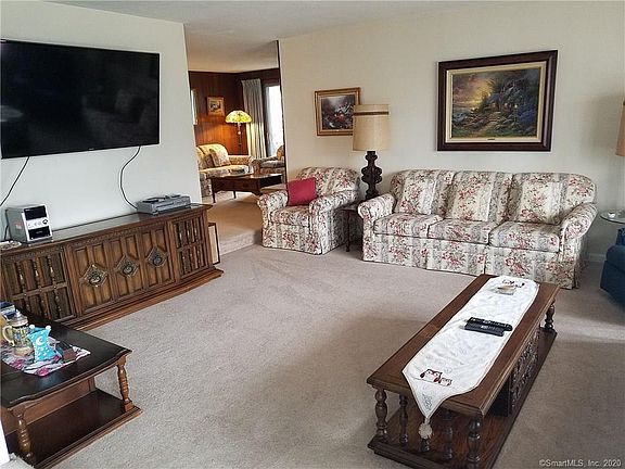 This home may have started the "open-floor plan" trend!! This ranch style home in Plainville boasts nearly 1900 sq ft of first floor living space. Situated on a half-acre lot, this home features 4 bedrooms (all with hardwood floors), 2.5 baths, a sunken living room, a fire-placed sitting area/den with sliders to a covered side deck, an over-sized kitchen/dining area complete with an island/breakfast bar. Off the kitchen you will find an enclosed porch/sun-room which overlooks a fenced-in back yard complete with 2 sheds! The lower level with hatch access mirrors the main floor (approx 1900 sq ft) and features a large finished family/rec room complete with a fire place and half-bath. The furnace is just 5 years old and the architectural roof is 7 years old. An over-sized 2 car garage with attic (pull-down stairs), central air, a whole-house fan and an intercom system rounds out this home making it perfect for just about anyone! Owner is downsizing and some furniture and most wall hangings/prints are available as well. With just a bit up cosmetic updating to bring it up to date, this home will easily compete with homes built in the last few years!!!