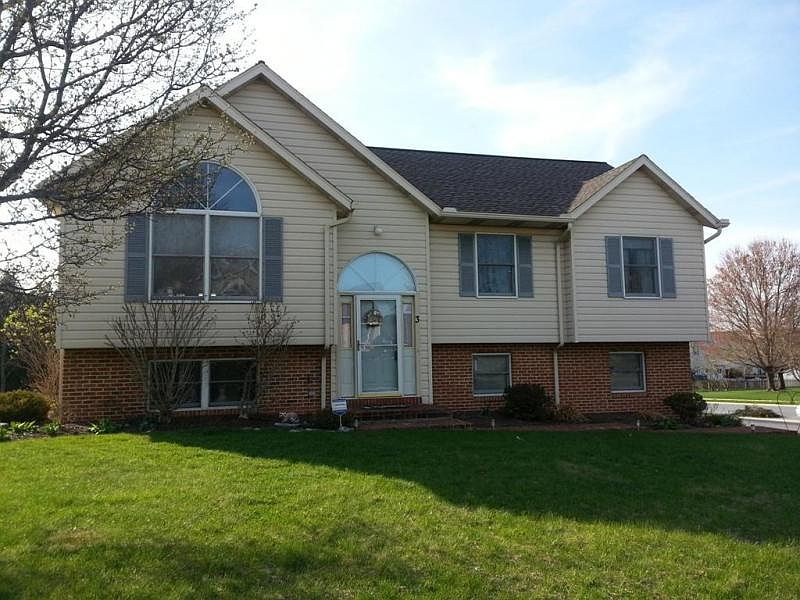 Awesome corner lot, modern bi level with large covered deck. Open floor plan with cathedral ceilings and lots of light because of the magnificent half moon windows.