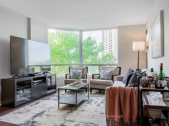 Spacious sun filled 1+1 bed suite in a private, well maintained building nestled in a secluded pocket. Open concept floorpan showcasing many designer features. Modern kitchen with quartz countertops, full sized stainless steel appliances, custom backsplash, undermount sink, pass through window with bar height counter. Oversized wall-to-wall windows with a clear view, updated flooring and light fixtures throughout. Spacious primary bedroom with double mirrored closet, and den/solarium with sliding doors that can be used as a 2nd bed or office. Newly updated 4Pc bath and ensuite laundry with upgraded front load washer & dryer. Designer lobby with 24hr concierge. Conveniently located within walking distance to TTC, Weston Go Station, minutes to major highways: 400/401/427. Walk-out from the back of building to Humber River Trails, bicycle paths, parks, restaurants and shopping! **Maint Fee Includes All Utilities & Rogers Cable Package**