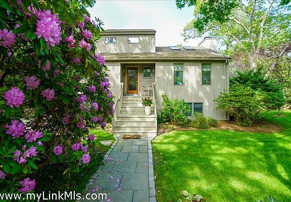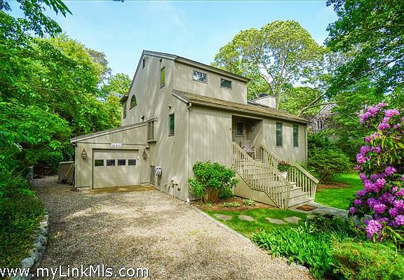 Located within the desirable Hidden Cove Association- A WATER ACCESS COMMUNITY created on over 65 acres with homes privately nestled with direct access to Sengekontacket Pond and Nantucket Sound. A lovely area with private boat dockage, walking trails and tennis all within the outskirts of Oak Bluffs with easy access to other towns. This inviting contemporary residence is designed to comfortably accommodate a large family with many special high-end touches throughout. The main floor greets you with a gracious living room anchored by a maple wood buring fireplace and high wood-beamed ceilings. There is lots of natural light from floor to ceiling windows, skylights and doors that lead to the deck connected to a chef's kitchen with marble counters and backsplash with wood paneled Décor appliances seamlessly integrating the custom cabinetry. The upper level is dedicated as the Principal suite with room for a sitting area and office space with access to a private balcony and a stylish bathroom en-suite with a deep soaking tub and a separate glass shower stall. The garden level comfortably separates all the bedrooms and bathrooms with bonus area with California Closet's murphy bed for an overflow of guests. The sliders lead to an enchanting private yard with lush green grounds, mature plantings, an irrigation system, the requisite outdoor shower and invisible fence. A blue-stone patio with spacious outdoor dining and grill area is an inviting spot to gather and entertain with family and friends.The attached one car garage has room for storage, beach gear and the summer car. This is a special property not to be missed.