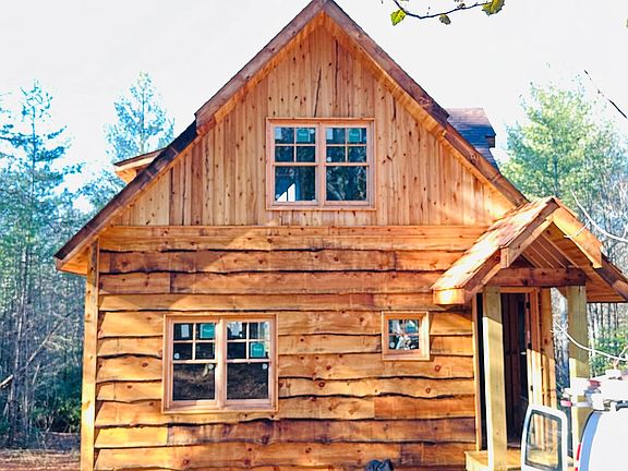 Charming rustic cabin , private and close to town . This new construction cabin features exterior with mix of live edge, poplar wood accent siding, stone and real cedar shake roof on porch. Master bedroom/ bath on main. Laundry conveniently located by master bedroom . Open/ living room kitchen area with plenty of space for dining table . Upstairs features 2 bedrooms with shared bath in between . Large covered party porch with fireplace. Interior finishes will be the perfect rustic mix of granite counter tops, tiled showers, stainless steel appliances , matte black fixtures, hardwood floors , wood ceilings and wood walls with accent walls throughout . Conveniently located just 10 mins to downtown Blue Ridge . Approximate completion end of February 2024. Pictures will be updated as construction progresses .