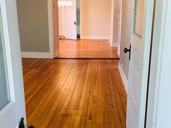 Large and bright 2 bedroom apartment on the second floor in a quiet duplex with a garage bay! Located in a great in town neighborhood on a dead end street. Beautifully updated, second floor with private entrance, enclosed front and back porches, hardwood floors, newer appliances. One car garage with automatic door opener and 2 paved off street parking spaces. Washer/dryer hookups in your own private laundry room. The last tenant left a washer and dryer for you. Includes heat, water/sewer, trash pickup, plowing and mowing. No smoking. Cat allowed with additional pet deposit and fees. Email Judy for the application. Available September 1st. Includes garage with automatic door opener, heat, water/sewer, plowing, mowing and weekly trash pickup.