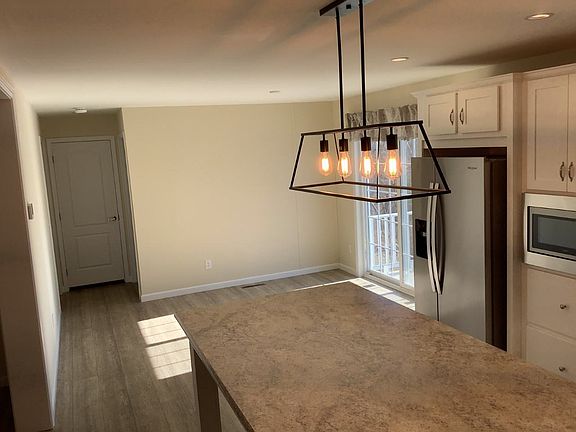 This move in ready home with easy living at Millwood, SUN Communities Newest 55+ Community won't last long. This community is brand new and features move-in ready manufactured homes. Our Chestnut model features a wonderful open floorplan, all stainless steel appliances, a kitchen island, an open dining area with slider to a patio. Carpeted bedrooms cozy up the homey feeling of this house. Separated primary bedroom and guest bedroom provides extra privacy. Easy access from your carport through the utility/laundry room. There is a shed with electricity for extra storage. Call the office today to see this home in person.
