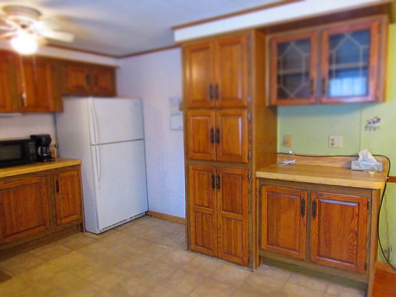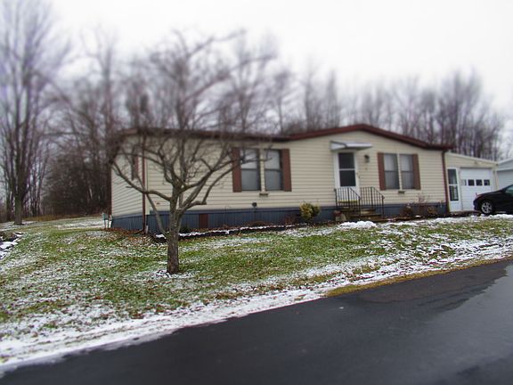 55 + Community neighborhood. Ranch with 2 bedrooms, deck, and 1 car attached garage. Nice Open Floor Plan with the Kitchen/Dining area overlooking the Comfortable Living Room! Master Bedroom with Two Closets and Walk in closet. Wooded lot for extra privacy. Lot rent includes water and garbage.