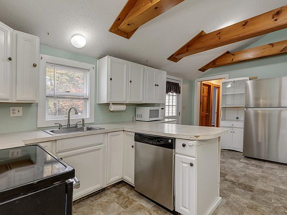 Charming and unique bungalow/ranch situated on a corner lot, offering both character and comfort. Cozy up by the pellet stove in the spacious living room featuring tongue and groove pine walls skylight and beamed ceilings that flood the space with natural light. The open kitchen with cathedral ceiling comes equipped with stainless steel appliances perfect for modern living. Enjoy new flooring throughout most of the home. With 2 bedrooms, 1 bath, and a right of way to the scenic Salmon Falls River, vinyl siding and vinyl windows. This property offers a peaceful retreat in a prime location. Don't miss out on this incredible opportunity, move in just in time to enjoy the holidays