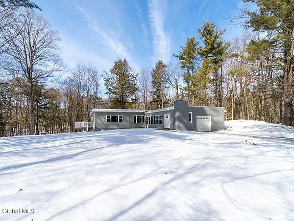Mid century modern ranch tucked away on a private 1.81 acre lot located in the award winning Burnt Hills-Ballston Lake School District. This home is completely updated, with quartz counter-tops, stainless steel appliances, luxury vinyl floors and customized showers in both full bathrooms. Other notable features include trex decking, white composite rail system, paver sidewalk and large back patio. Third bedroom option or additional living room located in the basement with egress. True turnkey home in every way, don't miss out!
