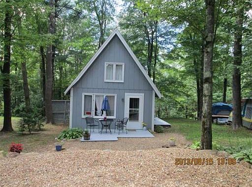 LOVE TO CAMP? But don't want to be in a tent or a trailer? This Permanent A-Frame Cottage at the ColdBrook RV & Golf Resort shows pride of ownership with many recent renovations. Newer Windows & storm Doors, heat from effecient gas log, ceiling fans. Washer & Dryer, Gas Stove, Refrigerator, Microwave & most furniture stays! Your private yard has been nicely landscaped with stone walls. Cottage is located in Chalet section of similiar homes, away from the bustle of the campground but allowing you full use of all amenities. Two HUGE pools, including kiddies wading pool & Olympic size swimming pool, recreation building, tavern, campstore, lots of room to explore. Children & Pets welcome. A lovely spot to "unplug" for the summer! Direct TV available! Beautiful 9 hole golf course available for a reasonable fee. Come take a look, you will want to stay! Access to home April 15 to October 15, you own the cottage & lease the land. Home is serviced by public water & sewer.
