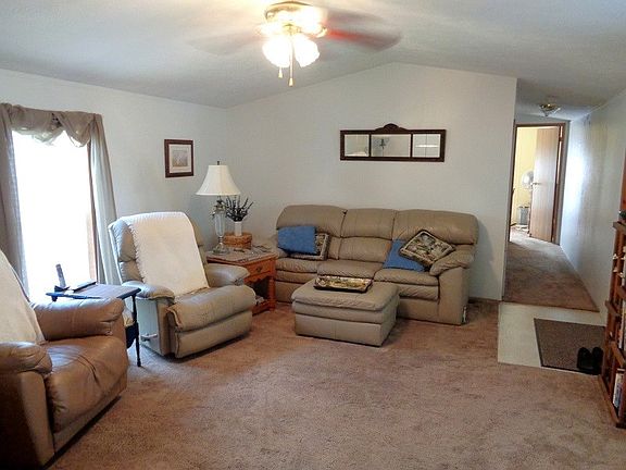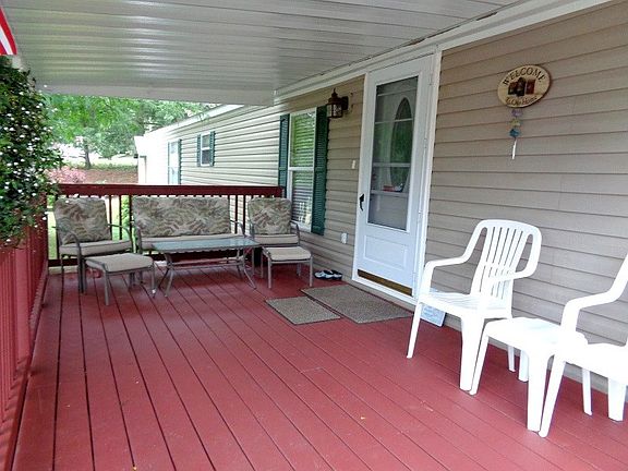 This 2004 single wide home is located in Edge View Estates with 3 bedrooms & 2 full baths. Large eat in kitchen. Open living room with vaulted ceiling, 2 bedrooms with closets on one side of the home, a large master suite off the kitchen with large walk in closest & master bath with walk in shower. Central A/C is 2 years old, large covered deck & shed with electric. Lot rent is $322/month and includes garbage, water, sewer and taxes.
