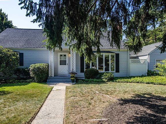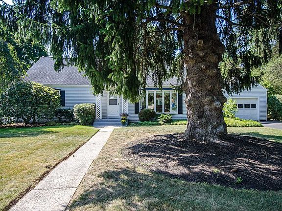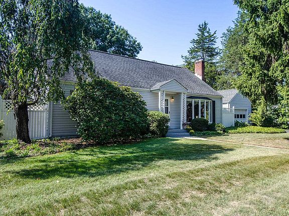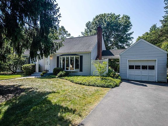 This spacious, fully dormered, Greenvale Farms Cape Cod, surrounded by beautiful plantings, mature trees and a gorgeous, level back yard feels like paradise. As you relax under the covered breezeway or take in nature and listen to the birds from the patio, you will forget that you are in a neighborhood. As you enter the home, you are greeted by beautifully refinished hardwood floors and a brick-surround woodburning fireplace. The entire common area is bathed in natural light streaming through the bow windows in both the living room and dining room. The dine in kitchen offers loads of cabinet and counter space and brand new appliances. Either of the two spacious first floor bedrooms would make a great master bedroom. If you prefer to settle in upstairs, there are two large additional bedrooms as well as a fifth room with a closet. Enjoy the convenience of a second full bath on this level. Longtime owners lovingly maintained this home inside and out. The boiler, hot water heater and oil tank are new and the roof has been replaced.