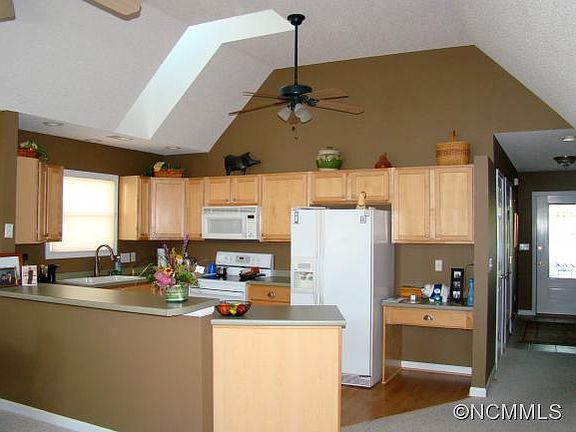 LIGHT FILLED GARDEN HOME with Pazazz! Dramatic, vaulted ceilings, skylight in kitchen, OPEN, split floor plan, gas log fireplace, private patio with fenced yard in a quiet area close to Warren Wilson College and ACA. Wonderful front porch to sit and read a book. Extra large single garage. Lots of storage too. So easy to entertain - This home is ready for you so see it soon!!