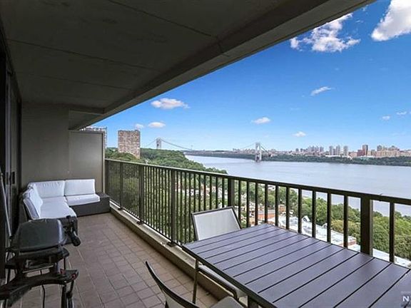 Its more than a home Its a LIFESTYLE. Prepare to be WOW'd. Spectacular custom renovations throughout this 3 bdr, 2 bath duplex home on high floor; the perfect combination of carefree living in a stylish co-op plus the most magnificent water views of the Hudson River, GWB and NYC. Everything you expect and more in luxury living. Renovated open custom kitchen w Jenn-Air, Miele and Liebherr appliances, custom cabinets, quartz countertops and island. Solid wood doors, Mirage "Sambucca" hardwood flooring thru-out (exc 2 bdrs). Recessed overhead soffit lighting, surround speakers in lr + component hub for all rooms. Fab master bdr bath w oversized shower, wall hung vanities, double sink and Grohe fixtures. Custom closets equipped w mgmt systems. Window treatments w auto blinds in LR. 24 hour doorman security-pools, tennis courts and more. Total Monthly $2779.03 includes all util, re tax, ul mtg, garage pking and cable internet(need to gross approx $134, 000). Make this home your favorite destination.