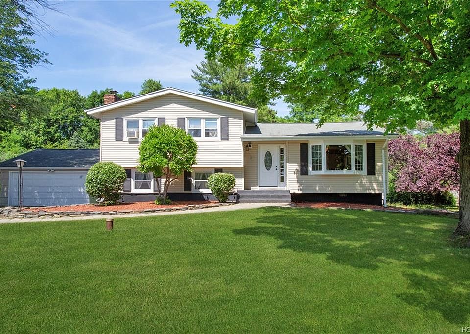 Beautiful and tastefully updated 4 Bedroom, 2.5 Bath Split Level on almost half an acre in Washingtonville School District. Enter into the living room with rich walnut colored hardwood floors that continue throughout the main floor. Eat-in kitchen with island includes stainless steel appliances and opens to the dining room with charming built in window bench. Private master en suite has vaulted ceiling, walk-in closet and sliders to the backyard. The 3 upstairs bedrooms are spacious and all have hardwood floors under carpet. Large Family room on lower level perfect for entertaining includes wood burning brick fireplace and leads to 3 season screened porch. Laundry, half bath and plenty of closet storage complete the lower level. Enjoy the patio and 18x36 in ground swimming pool with level fenced yard. Additional features: natural gas, newer windows, 2 car garage, vinyl siding,invisible fence. Commuter's dream close to shopping, highways and public transportation.