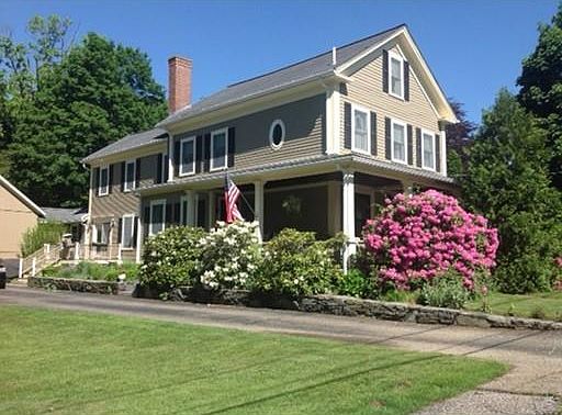 Just off Brookfield's Historic Common this well kept 1860 Antique Colonial is ready for new owners to make their history. Amazing detail & beautiful craftsmanship are embodied in the hardwoods, moldings, pocket doors, built-ins, book cases, front hall w/ turned staircase, floor to ceiling windows, French doors, 8 1/2 ft.ceilings, fireplace & Majolica tile surround. Modernities include Anderson windows, 200amp electric wired for generator, pvc plumbing & certificate of compliance for septic. Space for everyone & everything with10 rms, 5 bedrms & 2.5 baths; plus a 20x20 attch barn with 2nd fl loft & elec. Fully applianced light cherry kitchen with granite countertops. Master with walk-in closet &spacious bath, whirlpool tub, dual sinks, shower & tile floor. 1st floor bedrm possibilities. Enjoy listening to Friday night Summer band concerts from the wrap around screened front porch. Walk to the library, park, ball fields & elementary school. Come make this beautiful house your new home.