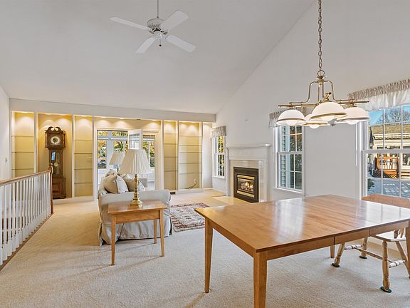 Welcome to this spacious beautifully maintained carriage style home in the beloved Countryside neighborhood! This home has the ideal single level layout with an attached nicely finished two car garage. The kitchen is bright and open with tall vaulted ceilings, a small dining area aside large light-filled windows, and laundry area in the closet. The large primary bedroom and bathroom suite has a walk-in closet, jacuzzi tub, walk-in shower and double sinks. The second bedroom is a great size with a second full bathroom across the hall. The living "great" room is wide open and spacious with tall vaulted ceilings, a larger dining area, a gas fireplace, lots of built-ins and french doors which open out to a bright and airy sunroom looking out onto the back yard. Down the stairs is a huge open nicely finished basement space, with more built-ins, a 3rd bonus room, and a 3/4 bathroom with walk-in shower. The utility room is clean, well organized and has a bulkhead for additional entry.  Countryside is the perfect neighborhood community with side walks, walking paths, a community pool and tennis courts, common green space, and is so close to the five corners shopping, restraurants, schools, parks, and public transportation.
