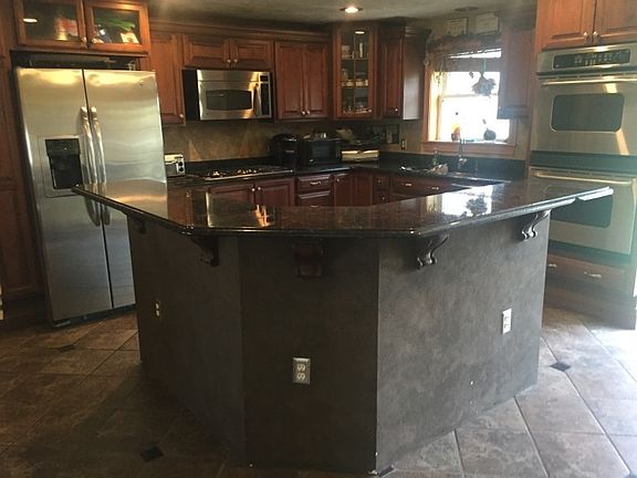 Large Kitchen has electric Double Oven Range, Fridge, Dishwasher, Microwave