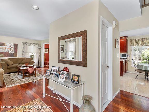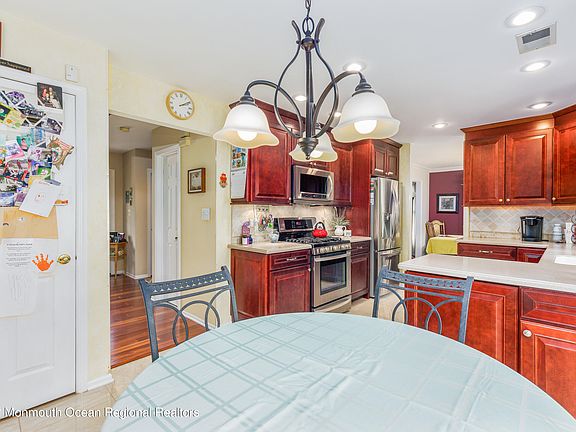 Sophistication abounds this stately 2 story nestled along the tree lined streets of desirable Aberdeen. Foyer leading to LR, DR, newer EIK w/ corian countertops, hdrwd floors on 1st floor. Family room w/ wood burning fireplace. Sliders leading to serene private yard oasis fully landscaped on private lot w/various trees along with mature grounds! Pool too! 2nd level boasts master bedroom. Abundant sun, neutral paint colors & charming bedrooms makes this home! Ample size basement finished. Home located near easiest access from all major highways, bus stop, train, restaurants & recreational activities. With hustle & bustle of everyday life; why not enjoy a cup of coffee on paver patio or BBQ on deck & make this your tranquil retreat home away from work!