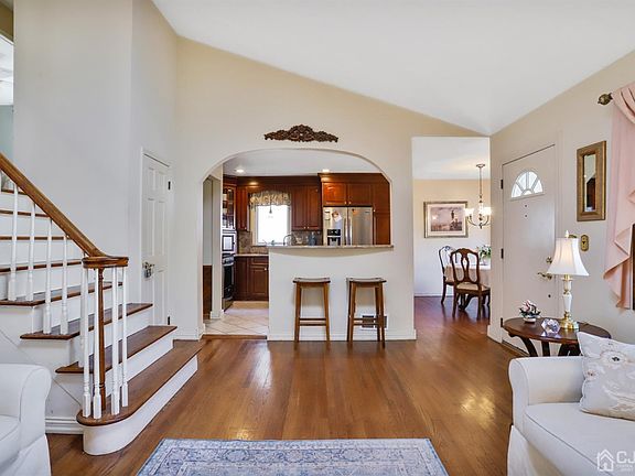 The Front porch welcomes you into this corner property home. It is a Sun Filled Split level in the Park section of Woodbridge and has an updated kitchen with a fun Breakfast Bar. Generously sized primary bedroom has an ensuite for privacy as the other two bedrooms share the main bath. The ground floor family room is a great place to relax at the end of the day. The all season sun room boasts 4 sky lights, a sunburst window and french doors leading out to the patio where you can jump into the jacuzzi for more fun and relaxation. Terpanick Park and Woodbridge Pond are just steps away. Make this house your home.