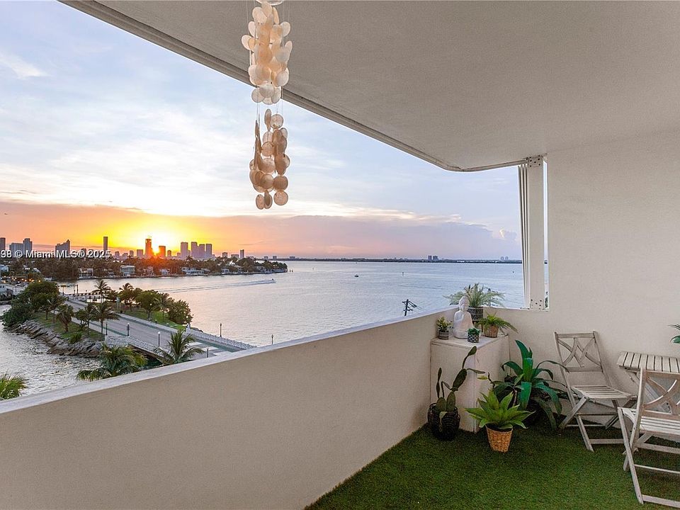 Spectacular bay front view of Biscayne Bay, Venetian causeway and downtown Miami from this fully renovated apartment in sought after Belle Isle island. Across the Standard hotel Spa and a few steps from Sunset Harbour many restaurants, boutiques and supermarkets. Enjoy endless sunsets from the spacious balcony or the pool deck. Spot dolphins or the best mansions across the bay. Fully renovated with modern designer touches, plenty closet space and incredible light throughout the day. Available fully furnished, rent includes high speed internet, Wi-Fi, hot water, covered reserved parking, pool, bbq area, 24 hour concierge in a full luxury building designed by famed architect Morris Lapidus.