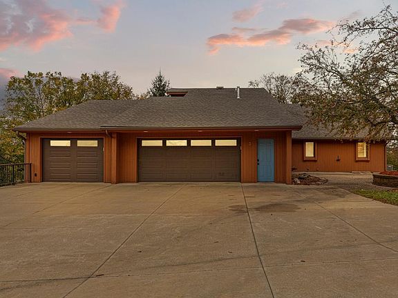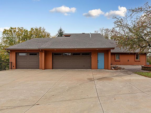 Fantastic One-of-a-Kind Property in a Desired Location! This exceptional, custom designed 5 bedroom 5 bathroom contemporary walkout ranch is perfectly placed on .79 acres which includes nice landscaping, mature trees, fenced backyard, two decks, patio, privacy, a huge heated 3 car garage, and options for outdoor adventure. Step inside to enjoy the beautiful hardwood floors that flow to an open concept living/dining area and connect to the large sunroom. The spacious kitchen with granite countertops and center island lead into the living room highlighted by a gas fireplace with built-ins around. The main level also includes a generous primary suite with private bath, two additional bedrooms, ½ bath, full bath, plus a convenient laundry area. The lower level boasts a large family room with gas fireplace, second kitchen, second laundry room, second primary suite with private bath, full bath, additional bedroom, second sunroom, and versatile recreation room that provides direct access to the concrete patio. Additional highlights include a new roof 2025, water softener 2024, water heater 2023, and more!
