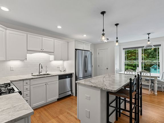 Brimming with natural light, this impeccably maintained cape with a welcoming full front porch features 3 bedrooms and 2 baths. The versatile floor plan allows for a 1st floor bedroom with plenty of closet space and a full bath on 1st floor. Or utilize this room as a remote work space. A modern kitchen with high end fixtures and stainless appliances seamlessly opens to a cathedral ceiling family room with a gas fireplace. Step outside to your deck to enjoy a barbecue or watch the wildlife in your backyard. Upstairs, you will find an open loft area, nicely suited for a homework station; two large bedrooms, and a great room that's perfect for both big kids (aka those loud adults) and true little ones! On the lower level, the walk-out daylight basement offers storage and expansion opportunity if you need additional space with heat already prepped & ready to be finished. This home has many thoughtful appointments and recent updates. This bright and airy home is move-in ready. The seacoast town of Kittery offers you endless opportunities to sample eclectic restaurants, boutique shops, the premier community center in Southern Maine and secluded resident only beaches.
