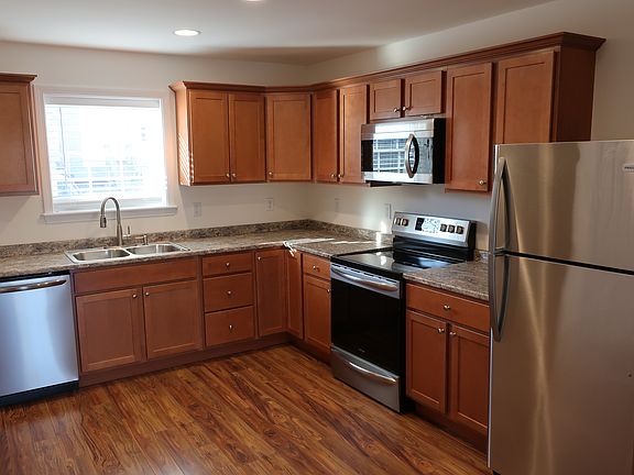 JUST BUILT 3 years ago End unit Available Mid Feb. Yes who knew the middle of Bangor had large quiet location left? Great location right behind Bangor High school and beside 25 acre Prentiss Woods forest preserve with walking trails. This location is quiet, roomy and yet just a minute to anything in Bangor. They are designed with you in mind. All wood floors & ceramic tile thru out (yes no carpet anywhere but the stairs). 1st floor has entry, nice kitchen with dishwasher, pantry and stainless appliances. Kitchen is open to Living room/Dining Room area and there's a sliding door to large back deck with room for table set & grill. 3/4 bath finishes the 1st floor so there's a bath on each level which is unusual in our area. Full basement is walkout under deck and has large storage area plus w/d hookup. 2nd floor has large master designed with room for king size bedroom set plus it has both a walkin closet and 2nd bonus closet. Full bath and good size 2nd bedroom also are upstairs. Price includes heat, sewer, lawn and snow and is $1950 for single occupancy $2050 for double or $2150 for triple occupancy which is maximum. Tenant just pays electric bill and small water bill. Good parking with 1 or 2 spots per unit available. Inquire with questions and tours are available! Pets are negotiable so just ask. Single medical professional currently occupying but can be toured and is available for lease Feb 15th