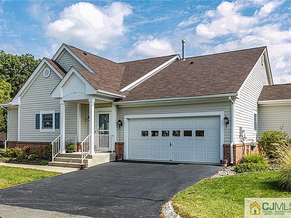 One of the larger villas in the premiere 55+ living community of Princeton Windrows, the Oxford model always tops people's list. Lots of sunshine throughout and tray ceilings in the foyer, living room and master suite make roomy spaces feel even bigger. All on one level. Picturesque view of the lovely gazebo, where folks stop for a chat while walking their dog. Tennis court nearby Inside new paint gives every room a clean and breezy vibe, but double French doors in the dining room and in the bright white, eat-n kitchen truly let the fresh air in. Breakfast on the private patio, but know you can enjoy the varied dining options of the main building for later. The master also features a walk-in closet, a clean white bathroom and an adjoining office/den. A second bedroom is handy to other just-as-spotless hall bath. Laundry is at the side entrance next to the 2-car garage. Princeton address.