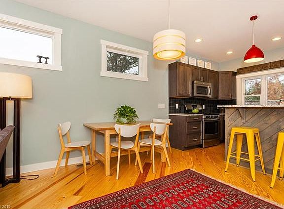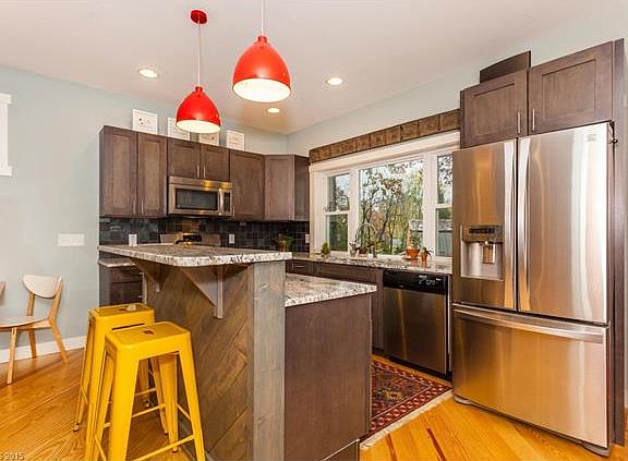 JAG Construction blends modern and Appalachian craftsman in this West Asheville GreenBuilt and Energy Star home. Come See how rough hewn timbers and red pendant lights seamlessly blend together for a stunning aesthetic. Walk to parks, shopping, dining and the River Arts District. This home boasts high-end finishes including a gourmet kitchen with a gas range, custom tile baths, a large front porch, a two-tier rear deck, fantastic natural light and vintage interior doors. Large shed with power!
