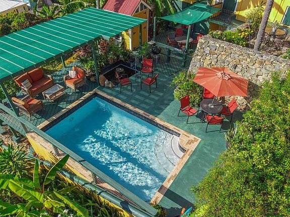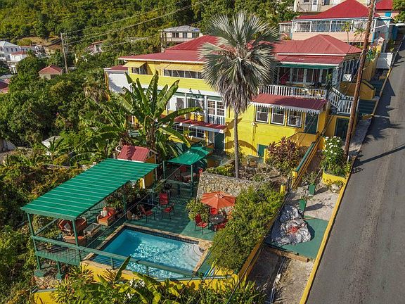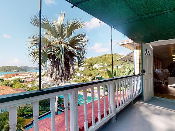 A remarkable property on Commandant Gade (Bunker Hill) with legacy views of historic Charlotte Amalie and Harbor. Extensive renovations from 2017 to present this property has a total of 5 apartments with 4 apartments rents at $6600/mo plus 2 bedroom owner's apt (rent value $2500/mo), and a lovely garden area with a pool. Currently rented long term they could also be 5 vacation rentals. Walk to everything in town, restaurants, shopping, grocery. See supplement for breakdown of 5 apartments.