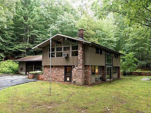 Whispering woods and 3.62 acres of rare private setting on two lots joining 1 and 3 Jericho add appeal to this hidden haven of natural landscape surroundings. This is a Techbuilt original Mid-Century Modern architectural style that has been well cared for and offers high quality materials and excellent workmanship. The center vaulted ceiling and expansive glass windows bring light and nature inside. Enter into a simplified split entry and head down to the first-floor level of this provocative contemporary offering a versatile center area with wood trim and brick surroundings that can be used for many purposes; recently this was a dining area. The kitchen is open and spacious also with plenty of room for a dining table. The large living room has a beautiful fireplace set on a brick wall backdrop and also offers built-ins as well as two walls of windows. The upper level has a main primary bedroom complete with a full bath. There are two other bedrooms and a full bath on this level. This setting offers ample space outdoors to enjoy nature and to play or relax. A breezeway between the 2 car garage welcomes you and offers weather protection. This intimate retreat is a special place and location in lovely Old Lyme makes it truly a home to consider.