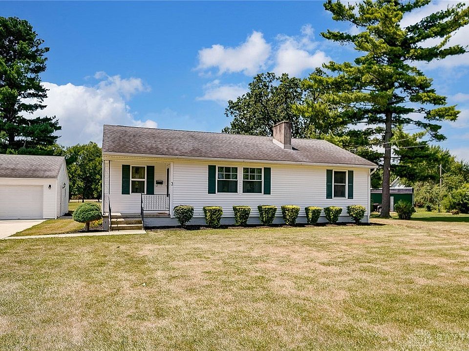 Welcome home to this lovely, well maintained 3 bed/1.5 bath ranch on a full, partially finished basement, giving you nearly 2500 sq ft of living space! The home has been well cared for with hardwood floors throughout (kitchen has LVP) and two wood burning fireplaces (one on the main level and one in the basement). Eat in kitchen is spacious with lots of cabinets. Drop ceiling, drywall and half bath have already been completed in the basement and it has been professionally waterproofed. Composite deck looks out on the over half an acre lot. The concrete driveway leads to a detached two car garage and there is yet another outbuilding with insulation and a wood burning stove that would make a perfect workshop. Conveniently located on the edge of Jeffersonville on a dead end street with easy access to I-71 and just minutes from the new Honda plant. Don't miss out on this beauty! Call for your tour today!