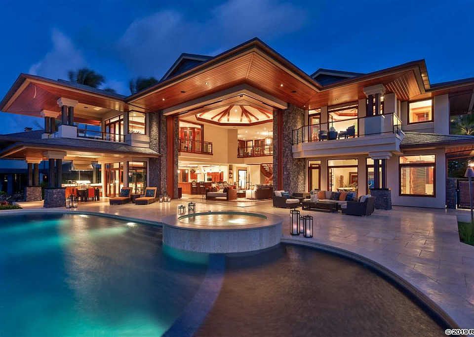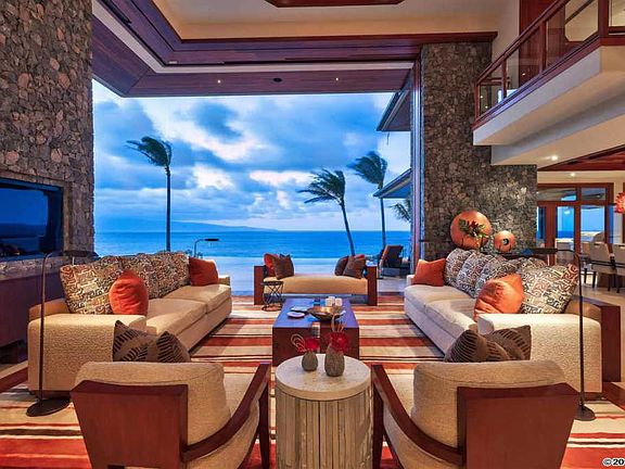 KAPALUA BEACHFRONT - This is one of only 4 beachfront homes in Kapalua - A rare opportunity to own a stunning Island Contemporary architectural masterpiece by award-winning Hawaii architect, Jeffrey Long. Situated on 28,000 square feet of pristine beachfront land, this Hawaiian Retreat retains its individual allure and distinction yet captures the true new essence of the new island style. The Great Room features 18 foot disappearing Sapele corner pocket doors which blur the division between indoor and outdoor living and provide a post card perfect frame for the breathtaking views of Molokai, the breaching whales and the Oneloa Bay shore breaks. This fully-furnished spacious 6 bedroom private retreat includes details like Euro-style Sapele glass doors imported from Italy, a freestanding granite tub hand-carved from a single block, Sapele Shaker cabinets and shutters, onyx and granite counters, a floating staircase, stacked Kapalua blue rock walls, and Ipe wood and travertine floors. Kissed by warm sunshine, soft Hawaiian tradewinds and the quiet of paradise, these indulgent comforts and sumptuous style make for an experience found nowhere else in the world. Adjoining lot is for sale as well.