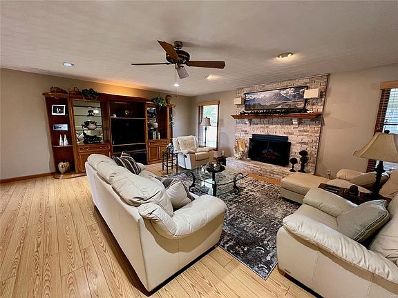 This spacious brick ranch built in 1984 by the present owner sits on 3+ acres, overlooking a beautiful 18 acre lake. The main level is roughly 2,100 sq ft with 3 bedrooms and 1 1/2 bathrooms. The living room has a brick fireplace, newer hardwood floors that flow throughout most of the main floor, and opens to the kitchen/dining room. The kitchen boasts stainless steel appliances, granite countertops, a breakfast bar, pantry, and a wine nook. The master ensuite has double sinks, a vanity, and walk-in closet. The deck and heated/air conditioned sunroom have a stunning view of the lake, and face south for afternoon shade. Main floor laundry is located off of the kitchen, along with the powder bath and 2 car garage. The finished walkout basement has 1,140 sq ft of livable space with a family room, bedroom, and bathroom, plus a bonus 1 car garage. Additional Rooms: Sun Room