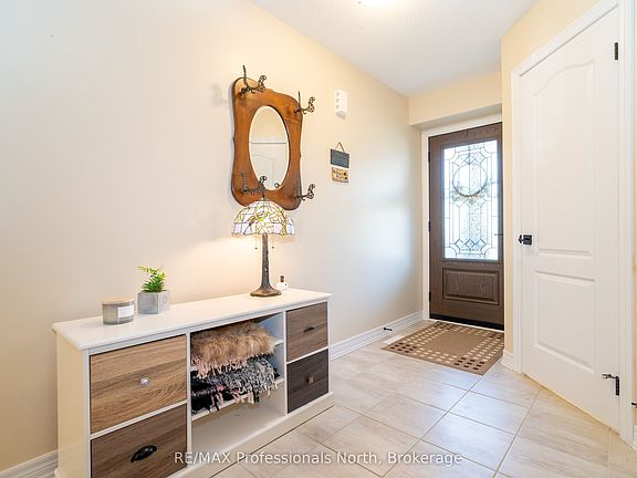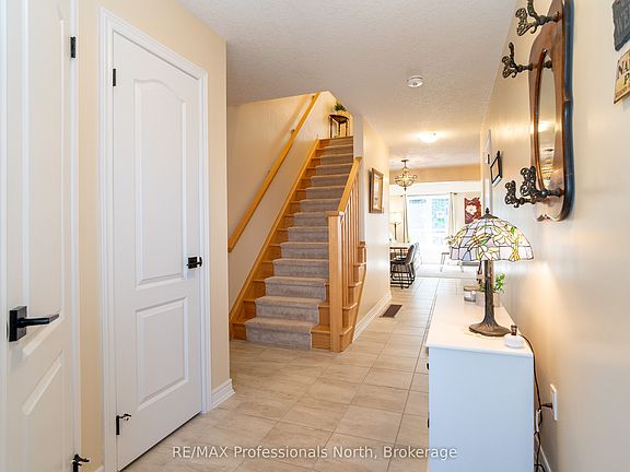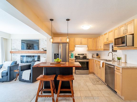 Welcome to 3 Kelsey Madison Court a stylish and low-maintenance two-storey freehold townhouse in the desirable Brookside Crossing community of Huntsville. Built in 2019 by award-winning Devonleigh Homes, this beautifully maintained 3-bedroom, 2.5-bathroom home offers the perfect balance of comfort, function, and modern style, making it an ideal choice for young professionals, families, couples, or retirees.The exterior features a charming blend of brick on the main level with sandstone-toned vinyl siding above, a paved driveway, and mature trees in the treed zone behind the property that provide natural privacy and a peaceful setting. Inside, an open-concept main floor is designed for everyday living and entertaining, highlighted by a custom built-in unit with an electric fireplace, stone face surround, and mounted TV. A convenient powder room completes the main level.Upstairs, youll find three well-appointed bedrooms, two full bathrooms, and laundry. The primary suite is thoughtfully designed, while the additional bedrooms offer flexibility for family, guests, or a home office.Step outside to the oversized back deckperfect for hosting summer dinners or enjoying a quiet morning coffee. The backyard is enhanced with fruit trees, gardens, and a contained fire pit, offering a cozy outdoor retreat.This welcoming neighbourhood also includes a park and the Gypsy Bill Creek, which flows to Fairy Lake, just steps from your front door. Everyday conveniences are close at hand, with Huntsville Hospital, grocery stores, restaurants, doctors offices, boutique shopping, and even dog parks only minutes away. For outdoor enthusiasts, Arrowhead Provincial Park, local lakes, and rivers provide endless recreational opportunities year-round.Move-in ready and set in one of Muskoka's most sought-after communities, this home is the perfect place to start your next chapter.