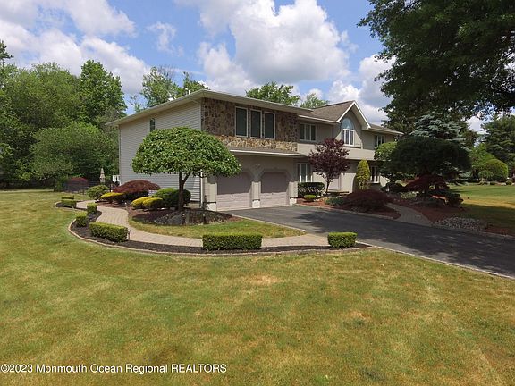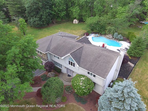 LUXURY LIVING AT ITS BEST, describes this stately custom colonial in the heart of Marlboro Township. Sure to impress this updated 4,361sq.ft. home is elegantly appointed w/numerous amenities (see Feature Sheet in Documents) Spectacular custom kitchen offers granite counters , top of the line SS appliances & enormous center island w/seating. A wall of windows overlooking a professionally landscaped country club yard showcasing a heated in-ground saltwater pool w/waterfall, spa & more to enjoy that staycation lifestyle! L/R F/R combo has a custom bar w/cherrywood counter & full wall granite WBFP great for watching the big game! An elegant D/R w/decorative molding to host family dinners. Oversized 2 car garage w/high ceiling will provide ample storage. Add'l bedroom/office on 1st floor..... w/custom maple spiral staircase & a remodeled full bath w/yard & pool access make entertaining a breeze! The primary bedroom w/lighted tray ceiling offers a double sided WIC & en-suite. Three add'l bedrooms, one w/vaulted ceiling & Paladium wdw, updated main bath & a bonus office, gym w/vaulted ceiling & laundry room complete the 2nd floor. The partially finished bsmt adds 1,600 sq. ft. of additional living space. Conveniently located near shops, restaurants, NYC commuting & a top rated school system make this home a MUST SEE! Schedule your private showing today!