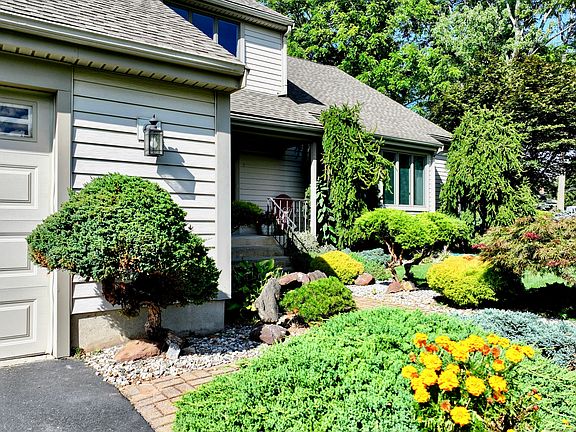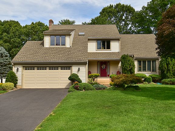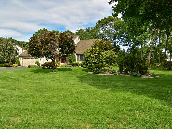 This beautifully renovated home combines timeless craftsmanship with modern design, offering custom trim work, built-ins, and extraordinary exterior details throughout. Step into the dramatic two-story foyer and discover a bright, open floor plan designed for today's lifestyle. The designer kitchen (renovated just 3 years ago) features granite countertops, sleek white cabinetry, stainless steel appliances, a wine rack, gorgeous backsplash, pantry, and hardwood flooring. The eat-in kitchen with accent wall opens seamlessly to the family room with a cozy fireplace, newer carpeting, and custom built-ins, perfect for gatherings. From here, step outside to a double-tiered deck overlooking a pristine backyard that feels like your own private garden. The main level also offers a formal dining room, elegant living room, convenient laundry, and a stylish half bath. Upstairs, retreat to the luxurious primary suite with two walk-in closets, a spa-like bath with dual vanities, and a sun-filled office complete with crown molding and built-ins. Four additional bedrooms; most freshly painted with newer carpeting; plus a full bath provide space for everyone. Notable upgrades include: new A/C system, water heater, garage doors (1 year), driveway & roof (10 years), and kitchen (3 years). Additional features: Anderson windows, sprinkler system, generator hook-up. Plus city water, sewer, and natural gas in the heart of Ellington! This home is move-in ready and designed to impress.