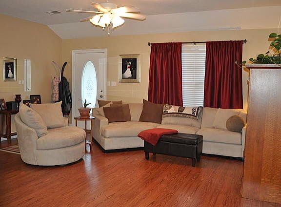 Oh so Cute! Well maintained and with no wasted space, seems larger than sq footage indicates. Great master bath with whirlpool tub and separate shower. TV in master bath remains. Large closet in master. Den, dining and kitchen are open with breakfast bar in kitchen. Covered patio and deck on the back. Large back yard.