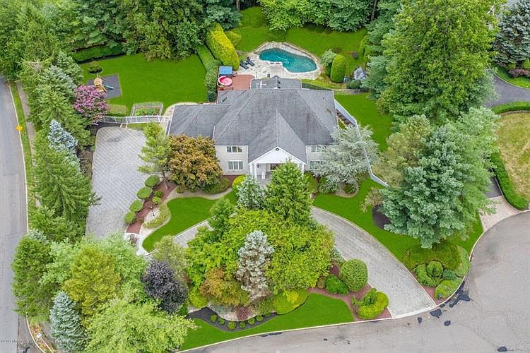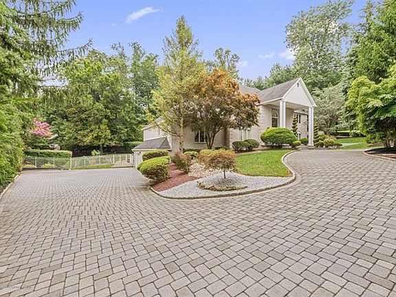 Elegant Brick Colonial w paver driveway on a cul de sac. Grand 2 story foyer w Marble flrs and Cinderella staircase. Formal Dining LIving room w decorative moldings and hardwood floors, tons of natural light! Office w French doors. Spacious Family room w gas FP. Gourmet EIK w SS appliances, expansive center island, under cabinet lighting, granite counter tops, walk in pantry, tile back splash and sliders to 3 tiered deck. First flr guest suite w full bath. Large Private Master w gas FP, tray ceilings and WIC. Master bath w double sinks and skylights. Three additional bedrooms w vaulted ceilings including a Princess suite. Full finished walk out basement w wine room. Private fenced yard w heated salt water Gunite pool, stone patio and deck w outdoor kitchen. All this plus Top Rated Holmdel Schools!