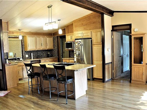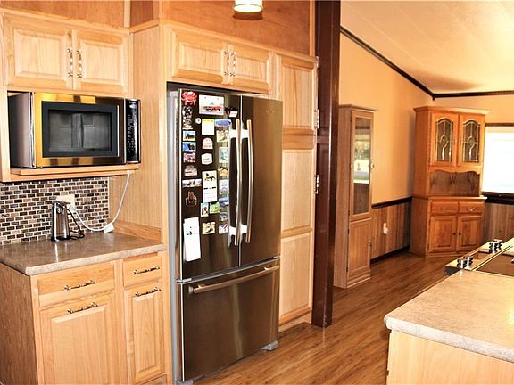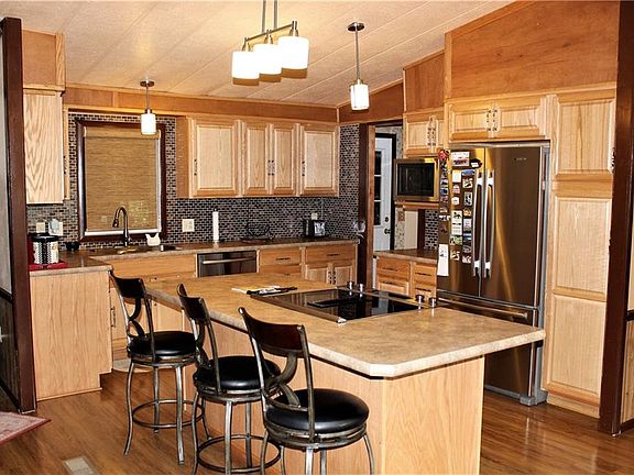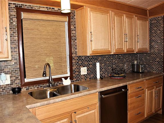 Remodeled in 2017 & was done with pride of ownership & to enjoy, not for resale. Remodel includes windows, roof, hardboard siding, vaulted ceiling w/exposed wood beam, flooring, kitchen countertops, backsplash & soft close cabinets. Stainless ight fixtures, cook stove in island and stainless appliances complete the modern open feel. All season bonus room added & used as an office/ exercise room. Mud room off kitchen w/storage leads to attached 2 car heated garage. Lot rent, exterior irrigation water, garbage, sewer. Total for all avg $403-$410 month incl interior water.