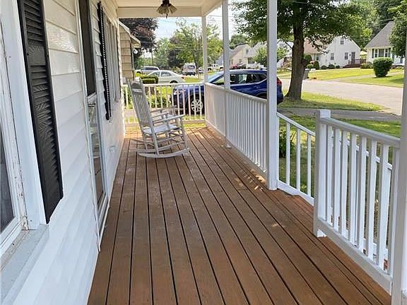 Adorable 4 bed Cape Cod Style home with large welcoming front porch ready for it's new owners! The kitchen has Luxury vinyl floor & all appliances included All remaining rooms on first floor have hardwood floors that will shine up like new once refinished! Freshly painted interior completed within the last week. First floor has two bedrooms, full bath, living room and kitchen with the second floor offering 2 additional bedrooms. Laundry/rec room in the basement with plenty of storage. Some light colored paint would brighten up the additional living area down there! In addition to the spacious front porch this home has plenty of outdoor space, large yard & huge 2 car detached garage! Access the back yard through the breezeway which has a brand new exterior replacement door, designated space for a wood burning/pellet stove and great space to turn into a mudroom! This home is conveniently located just a short walk down the street to The Yarde Tavern & quick drive to all the local amenities, highways & more!