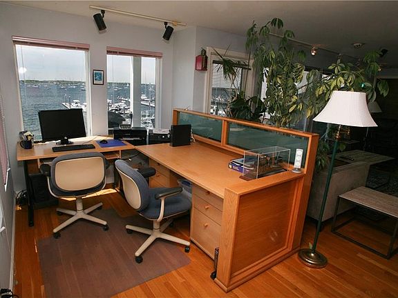 Winter Rental Available Nov 1. Spectacular condo steps from Newport Harbor with unmatched views. Enjoy beautiful sunsets with unobstructed views from either your large deck or from the large open living room. A 2-minute walk to Thames Street and downtown these private condos are in a lightly traveled area and are rarely become available due to the location, layout, and quality. This 2nd-floor unit is a 2 bedroom 2 bath 1536 sqft gem with a secure entrance and an elevator. The open floor plan and harbor facing full sliders and windows ensure that you will always have a great view and plenty of sunlight. An open kitchen and dining area, as well as hardwood floors throughout the main living space, make for very comfortable living. There is a cozy gas fireplace for the winter nights and Central AC for the warmer days. Low utility cost with efficient gas heat. Covered parking as well as additional parking for your guests. Winter rental available Nov 1.