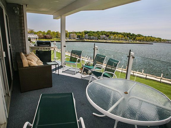 Winter Rental Available Nov 1. Spectacular condo steps from Newport Harbor with unmatched views. Enjoy beautiful sunsets with unobstructed views from either your large deck or from the large open living room. A 2-minute walk to Thames Street and downtown these private condos are in a lightly traveled area and are rarely become available due to the location, layout, and quality. This 2nd-floor unit is a 2 bedroom 2 bath 1536 sqft gem with a secure entrance and an elevator. The open floor plan and harbor facing full sliders and windows ensure that you will always have a great view and plenty of sunlight. An open kitchen and dining area, as well as hardwood floors throughout the main living space, make for very comfortable living. There is a cozy gas fireplace for the winter nights and Central AC for the warmer days. Low utility cost with efficient gas heat. Covered parking as well as additional parking for your guests. Winter rental available Nov 1. HEAT INCLUDED! Owner pays HEAT